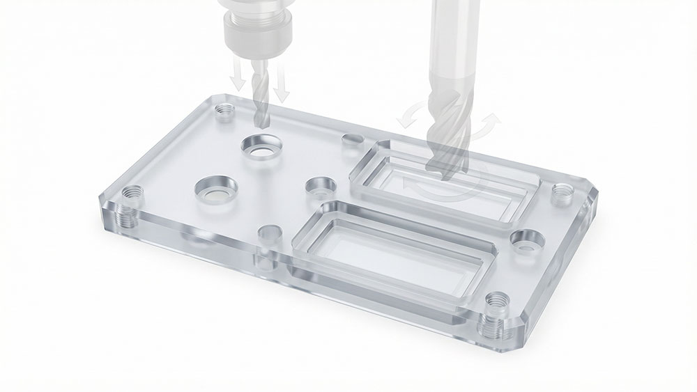 Die Integration von Gewinden, Taschen und 3D-Konturen ist ein wichtiger Bestandteil moderner Kunststoffbearbeitung. Dabei werden funktionale Elemente direkt in das Bauteil eingebracht.