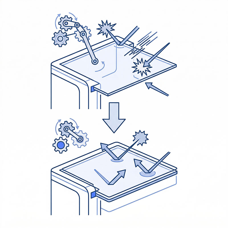 Glas ist transparent, aber schwer und bruchanfällig. Standardkunststoffe sind leichter und flexibler, reichen jedoch ohne abgestimmte Werkstoff- und Oberflächenstrategie oft nicht aus.