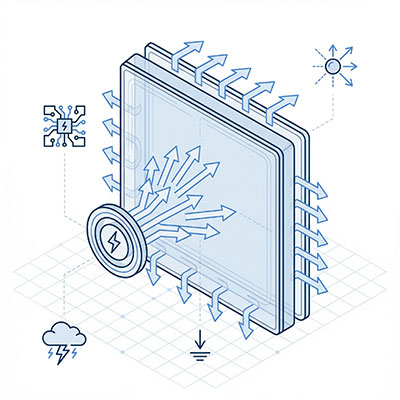 Während klassische Kunststoffe elektrostatische Ladung speichern und unkontrolliert entladen, sorgt antistatisch modifiziertes Polycarbonat für eine gezielte Ableitung. Dadurch wird verhindert, dass sich kritische Spannungen überhaupt aufbauen.