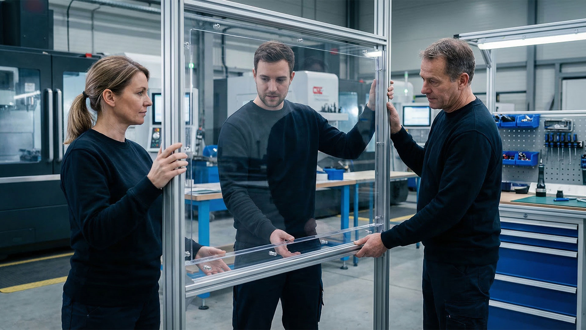 In Kombination mit antistatischen Eigenschaften entsteht ein Werkstoff, der sowohl mechanischen als auch elektrischen Anforderungen gerecht wird. Zusätzlich bleibt die optische Transparenz erhalten, was insbesondere für Sichtfenster, Schutzverglasungen oder Maschinenabdeckungen relevant ist.